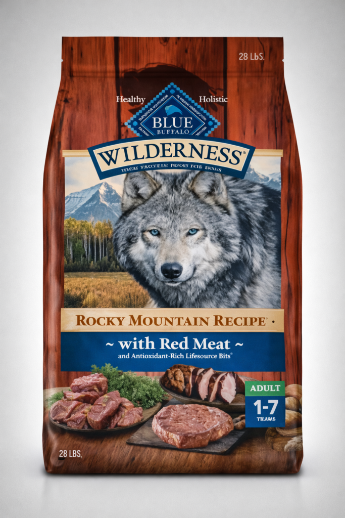 Blue Buffalo Wilderness Rocky Mountain Recipe with Red Meat is a high – protein, grain – free dog inspired by the dite of wild wolves. made with real red meat and antioxidant – rich Lifesource Bits, it supports strong muscles, healthy immunity, and overall vitality for adult dogs.