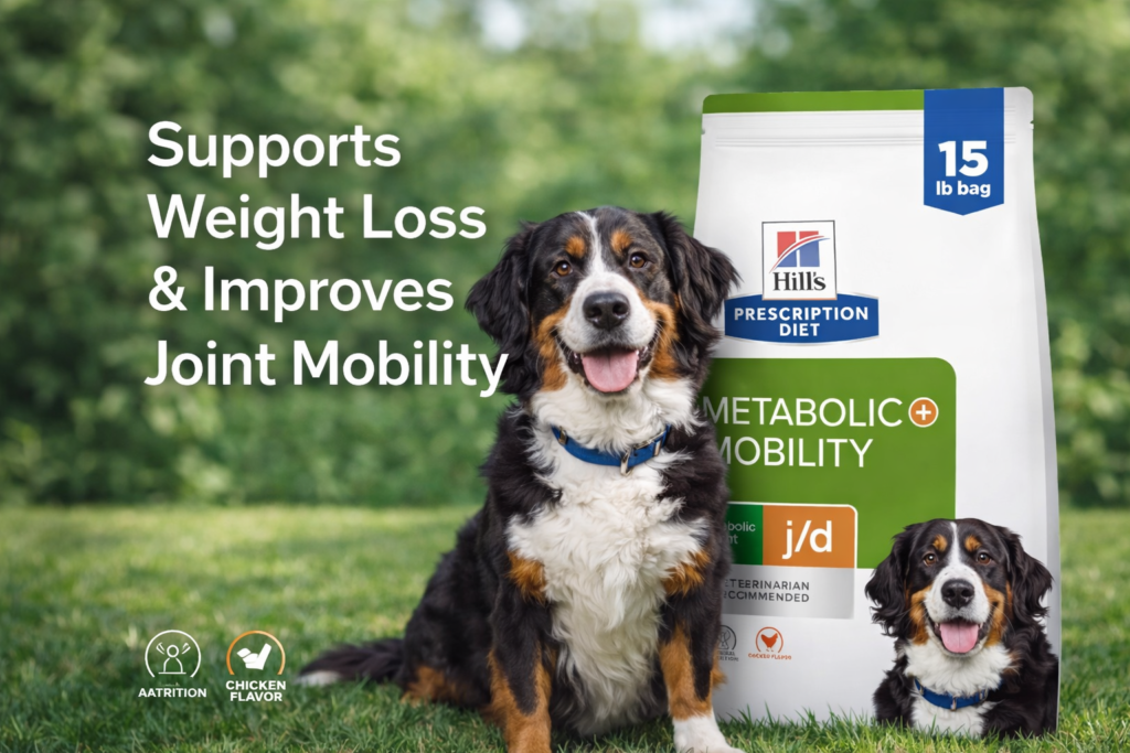 Hill’s Metabolic Mobility Dog Food is a specially designed veterinary diet that helps dogs manage weight while improving joint health. Many dogs today suffer from obesity and joint stiffness due to lack of activity and poor diet. This makes it essential to choose a dog food that not only supports weight loss but also improves mobility.